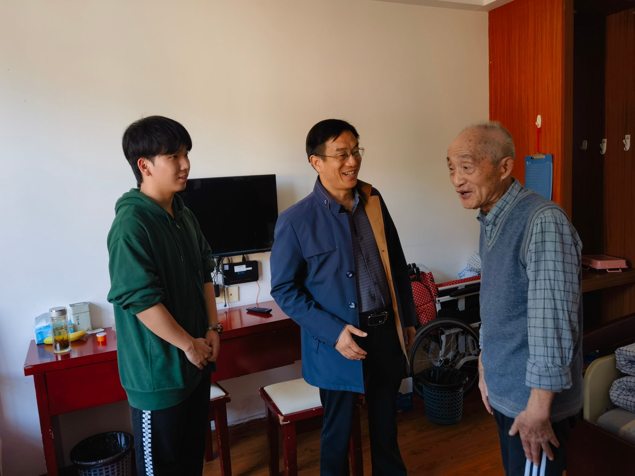 廖志凌一行先后来到学院农机实验大厅、老教师家中、德高护理院等地亲自为老教师送去节日祝福。在耒耜大楼前,廖志凌与刚退休仍热心学院工作、大清早亲自来帮忙开机器的孙宏伟老师亲切交谈,对他的无私奉献表达了由衷的感谢。随后走访慰问了李协征、王光亮、陈翠英等近90岁高龄的老教师,向老教师介绍了学校学院的最新发展规划,详细询问了老教师们的生活及健康情况,并感谢老教师们对学院工作的支持,表示学院将全力以赴为老教师提供便利和服务。
