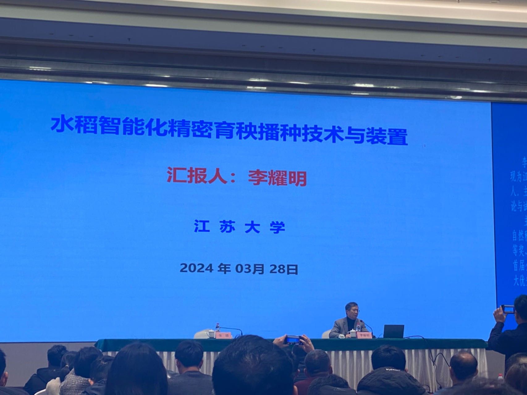 现场会期间,李耀明应邀作“水稻智能化精密育秧播种技术与装置”大会技术报告,从我国水稻育秧技术需求、当前育秧播种装备、整盘气吸式工作原理及装备等多个方面,阐述了育秧播种装备面临的问题及装备应用前景。