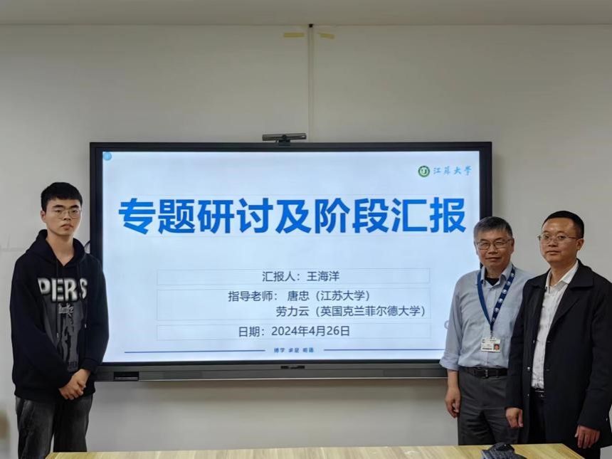 劳教授作为我院硕士研究生王海洋的海外合作培养导师和本领域资深专家,专程从英国赶来听取学生的科研课题阶段性汇报并通过专题研讨给予具体指导。本次会议由学生的校内青年导师唐忠教授主持。