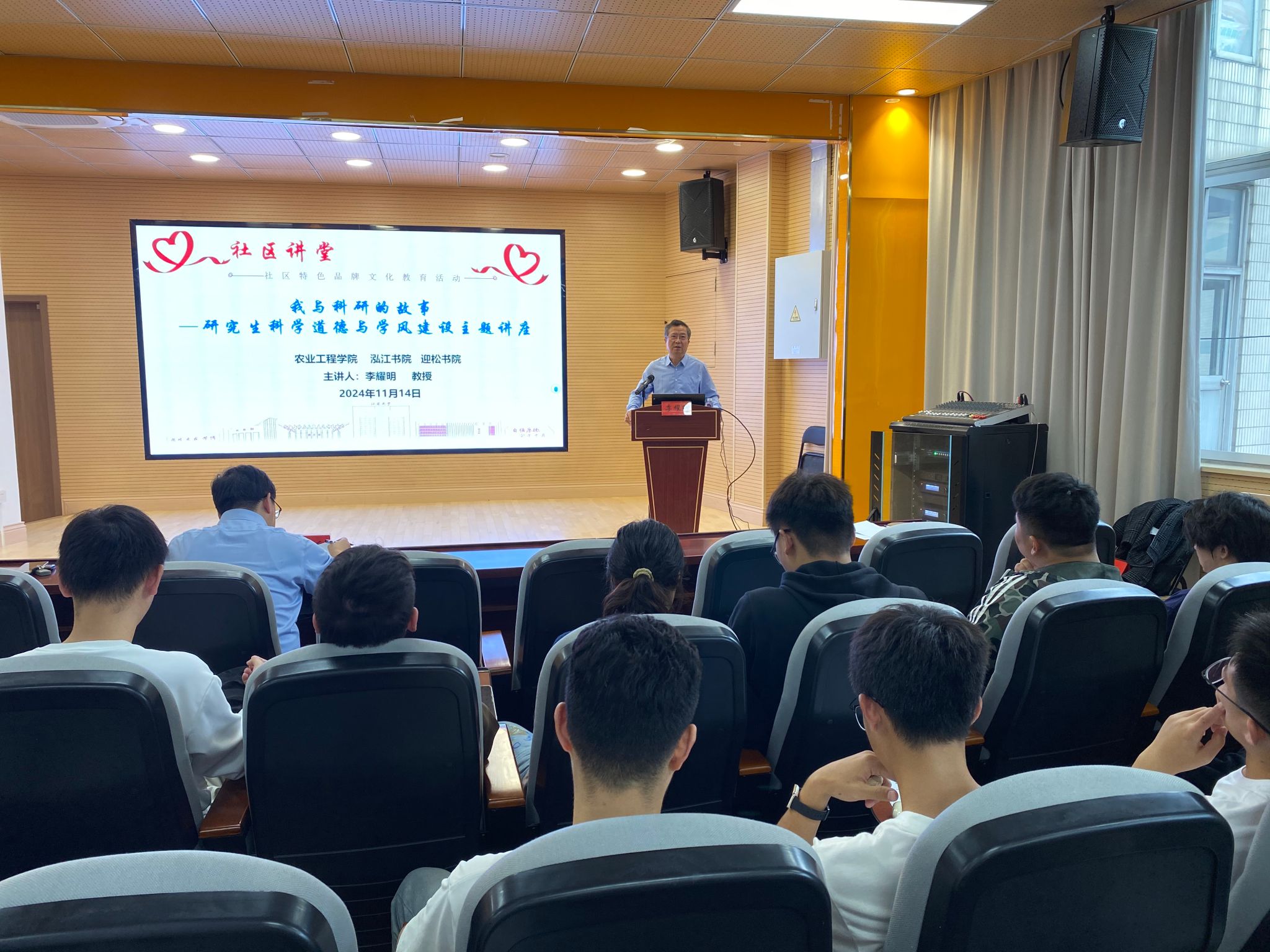 为大力弘扬科学道德,倡导广大研究生恪守诚信规范,11月14日,伟德betvlctor1946源于英国联合泓江书院和迎松书院开展我与科研的故事暨研究生学术道德与学风建设主题讲座,伟德betvlctor1946源于英国关工委李耀明教授作主题讲座,2024级全体研究生参加学习。
