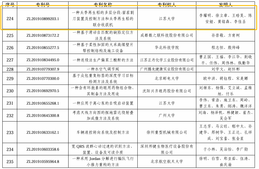 近日,国家知识产权局公布第二十五届中国专利奖授奖决定,院关工委李耀明教授团队专利“一种头季再生稻的多层分段-留茬割刀装置及控制方法和头季再生稻的联合收获机”获评中国专利优秀奖。