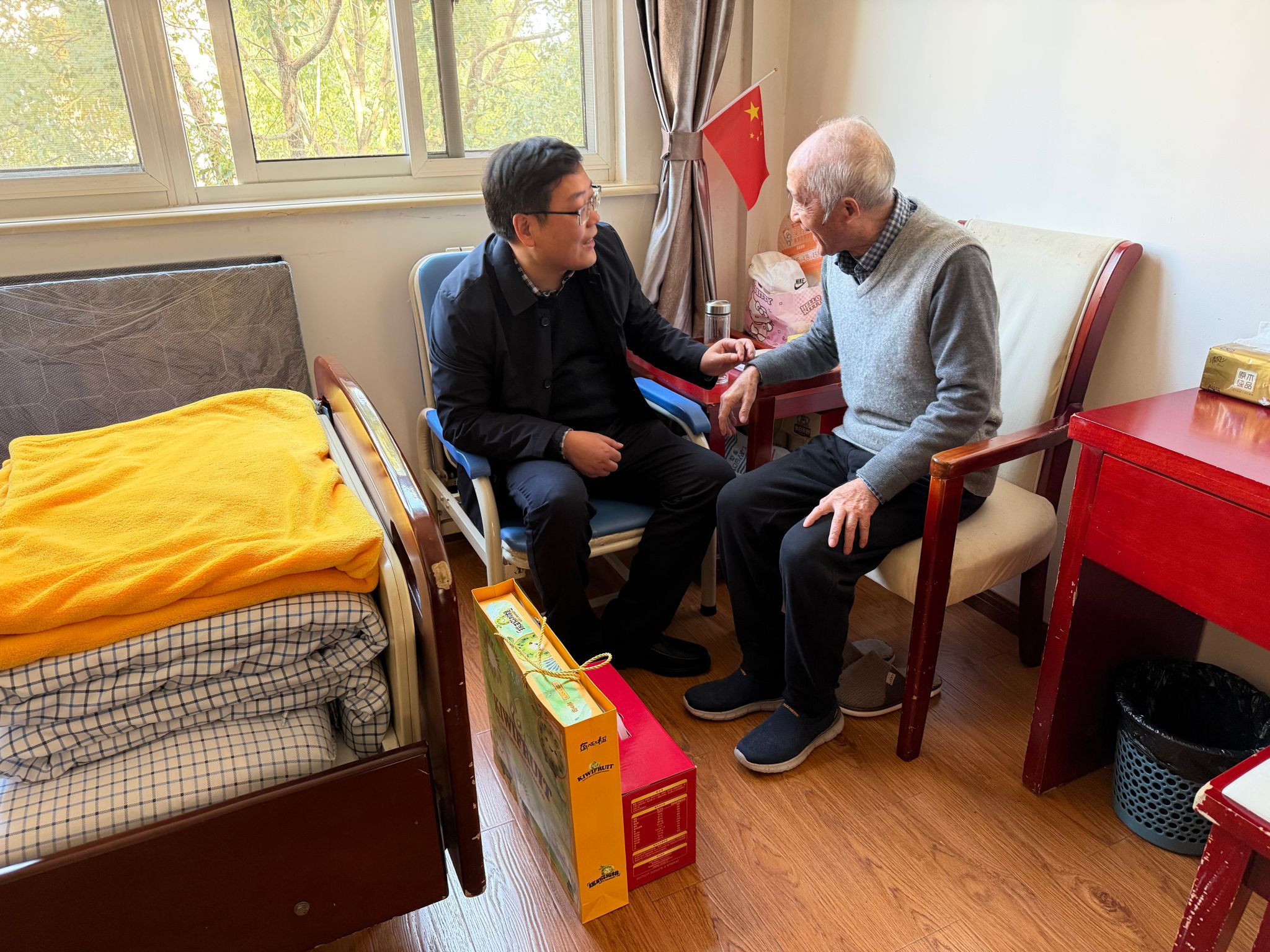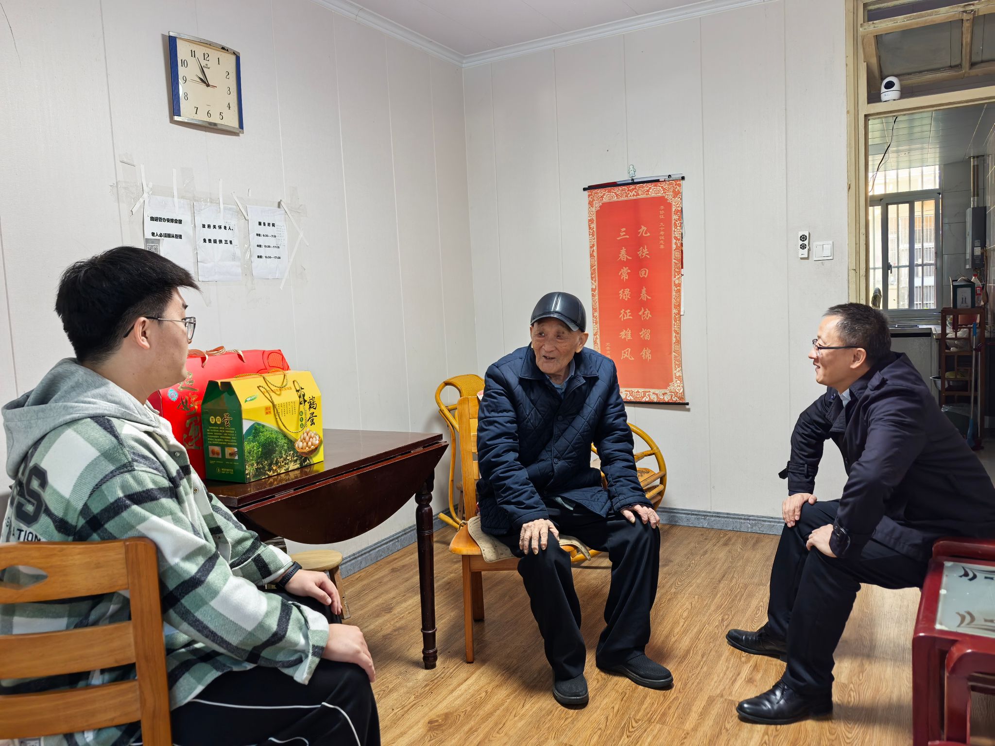 廖志凌与学院李耀明教授就学院学科发展、伟德国际、青年人才培养等进行了交流,李教授分享了数十年工作和最新调研的心得体会,对学院相关工作提出建议。黄文岳等看望了90岁高龄的王光亮老师,表达了师生对其晚年生活的祝福,并追忆江大往事,汇报学校学院发展最新动态,衷心感谢老教师为学院发展作出的巨大贡献。周军带领师生代表走访了李协征和孙宏伟老师,询问了老师们的近况,表达了节日祝福,并协助检查居家安全设施。
