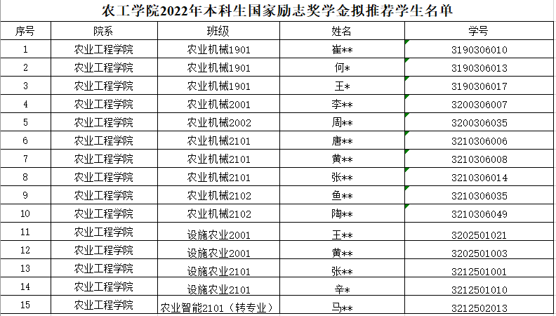 2022年度伟德betvlctor1946源于英国本科生国家励志奖学金建议名单