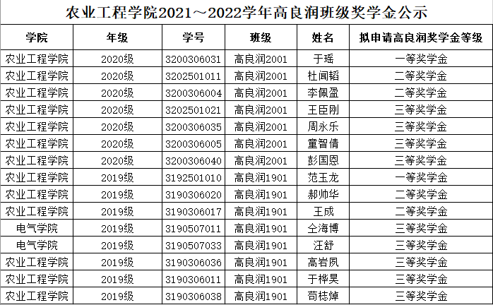 2022年“高良润”新农科拔尖人才实验班专项奖学金拟推荐名单公示