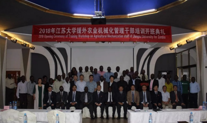 The Opening Ceremony of Jiangsu University's Training for Foreign Agricultural Mechanization Management Cadres was held in Lusaka, capital of Zambia, in 2018